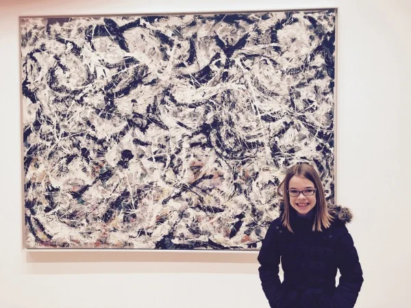 Tess in front of a Jackson Pollock original. I'm sure there's all kinds of creativity I'm missing, but isn't that pretty much paint splattering? "Here you go. That will be one million dollars."