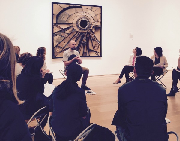 Michael and Tess were in the zone, at one point joining a criticism group’s discussion in a gallery. Suffice to say, I didn’t usually understand the pieces, but one in particular spoke to me. It said, “I’m a white canvas painted gray.” Profound.