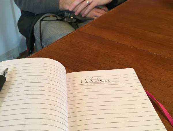 Michael and I sitting down to figure out how to best use my 168 hours per week. Sleeps tops my list. Followed closely by naps.