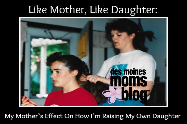 I'm blogging over at Des Moines Moms Blog today as part of their "Sugar and Spice and Everything Daughters" series about the complicated nature of Mom-Daughter relationships. My relationship with my mom and how she parented me definitely affects how I'm parenting my own daughter.