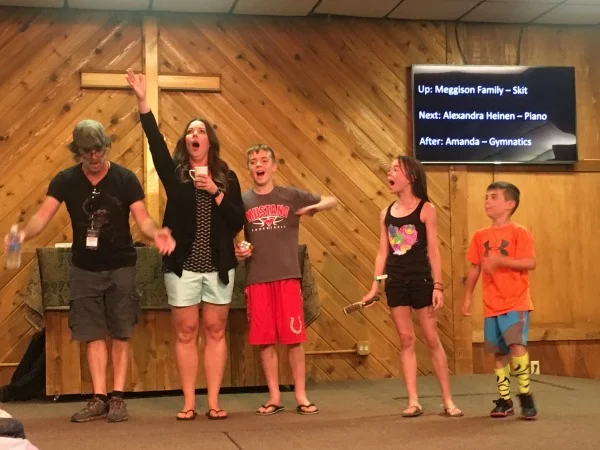 The Meggison Family Actors performing the skit, "We're Going to Family Camp!" in four acts. Act Four (shown): Opera